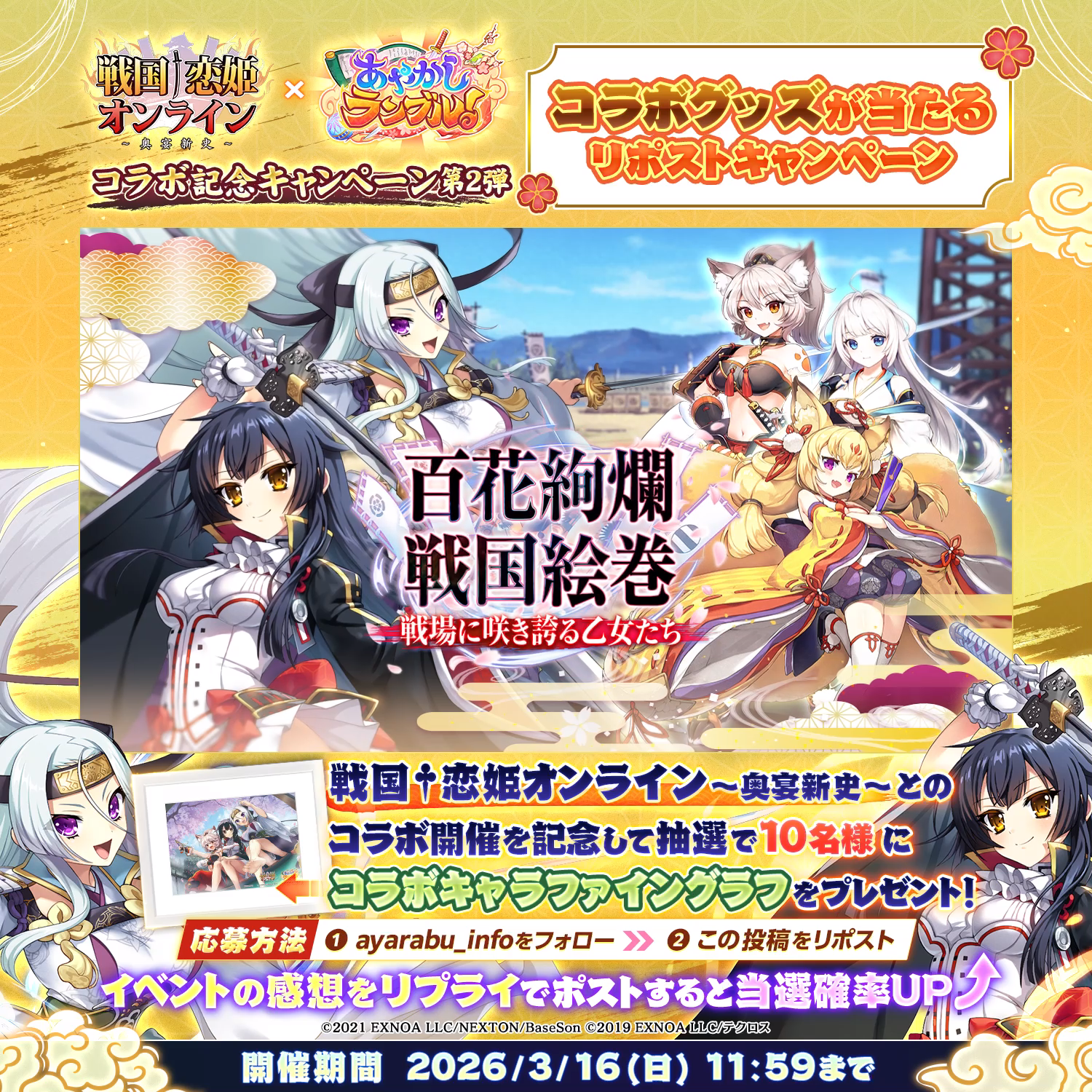 戦国†恋姫オンライン〜奥宴新史〜とのコラボ開催を記念してキャンペーン第2弾を開催!