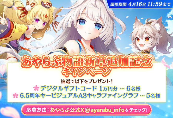 ◆ 本キャンペーンは『あやかしランブル!』運営が実施するものであり、X(旧:Twitter)社とは関係がありません。